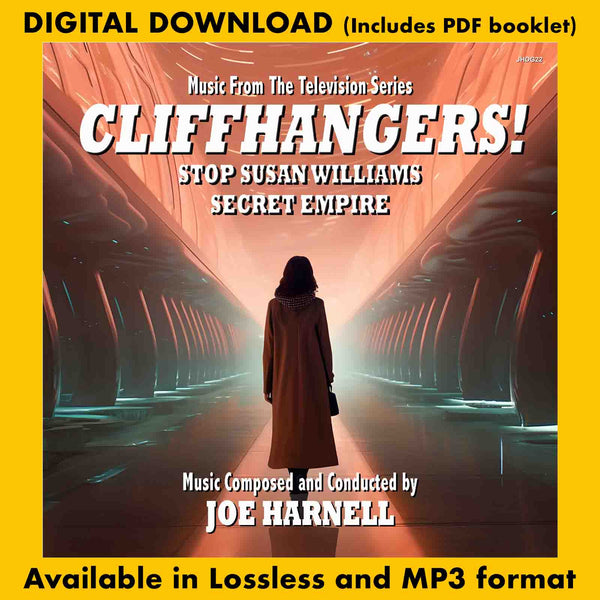 Previously, there was a two-disc set released of the music from CURSE OF DRACULA (JHCD 031), the lead feature on CLIFFHANGERS! and now fans of the other two adventures, STOP SUSAN WILLIAMS and THE SECRET EMPIRE, can enjoy more of these loving tributes to those thrilling theatrical serials of yesteryear.