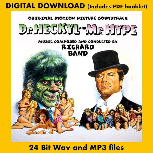 Composer Richard Band was contacted by Charles B. Griffith and asked to score the film. DR. HECKYL AND MR. HYPE would be his third score. His music for the film is a mixture of orchestra and electronics, considered a unique approach in those days as synthesizers were still relatively in their infancy in film music. The score is built around the interaction of three primary themes and two subordinate motifs. The main theme consists of the melody that accompanies both Dr. Heckyl and Mr. Hype as they are characterized through the story. The main theme represents the overall quirkiness of the whole tone of the movie. The score was recorded with a small orchestra of 20 – 22 pieces, small string, brass and woodwind sections, along with two percussionists and augmented by synthesizers.