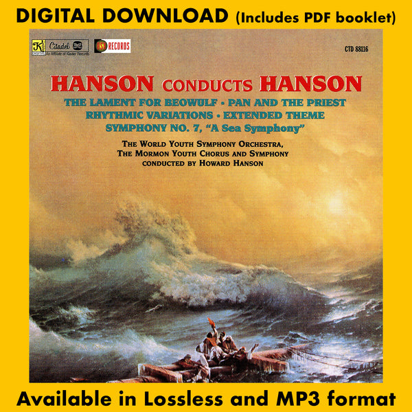 Buysoundtrax Digital, in association with Citadel Records, presents HANSON CONDUCTS HANSON, The Lament For Beowulf/Pan and the Priest/Rhythmic Variations/Symphony No. 7 "Sea Symphony" featuring classical works composed and conducted by Howard Hanson as performed by the World Youth Symphony Orchestra and The Mormon Youth Chorus and Symphony. Featured works include The Lament for Beowulf Op. 25, Pan and the Priest - Symphonic Poem Op. 26, Symphony No. 7 "Sea Symphony" and others.