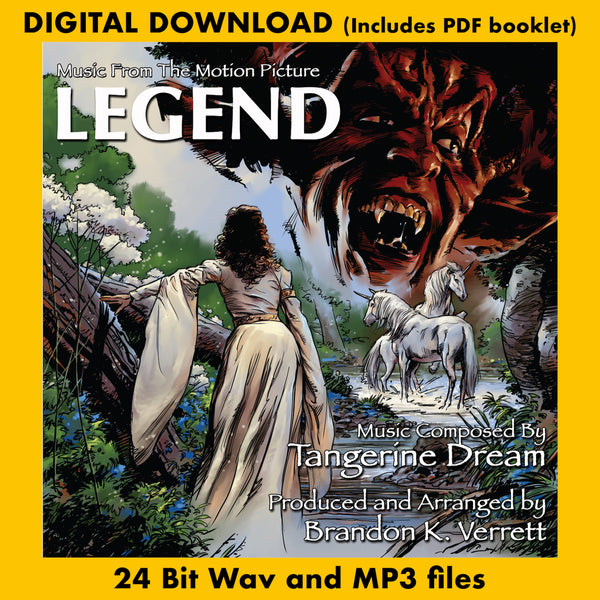 BUYSOUNDTRAX proudly presents LEGEND – MUSIC FROM THE MOTION PICTURE, featuring a new exciting recording of music composed by Tangerine Dream, produced and arranged by Brandon K. Verrett, featuring vocal performances by Katie Campbell. LEGEND – MUSIC FROM THE MOTION PICTURE includes exclusive liner wrotes written by noted author Randall D. Larson, detailing the history of the film’s music and new comments from composer/arranger Brandon K. Verrett related to the development of the project. LEGEND – MUSIC FROM THE MOTION PICTURE also features striking front cover and rear tray artwork produced by noted artist and illustrator Jerry Bingham (BATMAN: SON OF THE DEMON, BEOWULF) that is exclusive to this release.