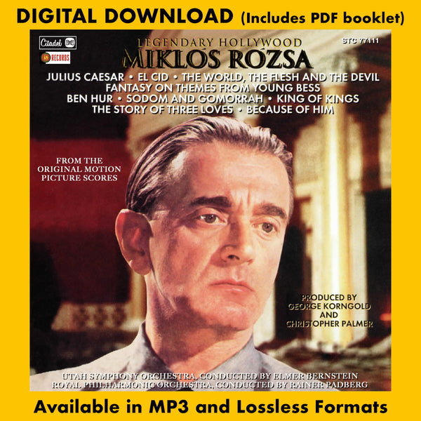 Buysoundtrax Digital in association with Citadel Records presents Legendary Hollywood: Miklos Rozsa featuring music from the original scores to Julius Caesar / El Cid / The World, The Flesh And The Devil / Fantasy On Themes From Young Bess / Ben Hur / Sodom And Gomorrah / King Of Kings / The Story Of Three Loves / Because Of Him.