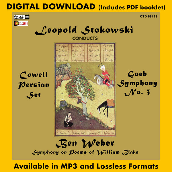 Buysoundtrax Digital, in association with Citadel Records presents Leopold Stokowski Conducts Henry Cowell, Roger Goeb, Ben Weber. The album features Henry Cowell's "Persian Set'" Symphony No. 3 by Roger Goeb and Ben Weber's Symphony on the Poems of William Blake. Featuring performances by Baritone Warren Galjour.