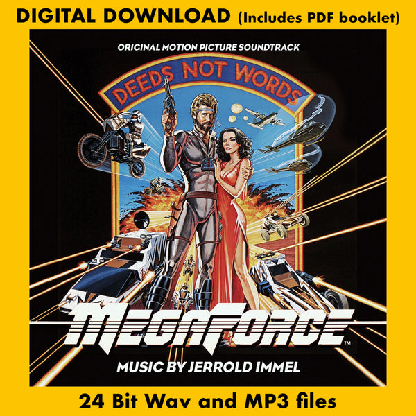 BUYSOUNDTRAX Records presents the original soundtrack to MEGAFORCE, featuring music composed by Jerrold Immel (DALLAS, KNOTS LANDING, HOW THE WEST WAS WON, VOYAGERS) for the 1982 camp action classic directed by Hal Needham (SMOKEY AND THE BANDIT, THE CANNONBALL RUN, HOOPER, THE VILLAIN), starring Barry Bostwick, Persis Khambatta, Michael Beck, Edward Mulhare and the great Henry Silva.