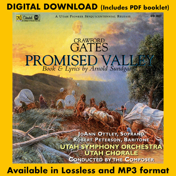 Buysoundtrax Digital, in association with Citadel Records presents PROMISED VALLEY: A MUSICAL PLAY composed by Crawford Grey with lyrics by Arnold Sundgaard, featuring soprano JoAnne Ottley, Baritone Robert Peterson, Tenor Noel Twitchell and the Utah Symphony Orchestra and Utah Chorale.