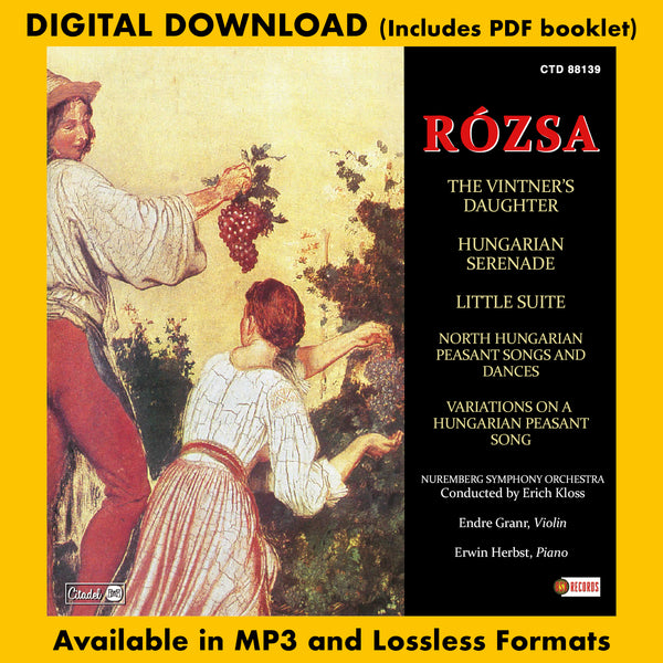 Buysoundtrax Digital, in association with Citadel Records presents The Vintner's Daughter / Hungarian Serenade / Little Suite / North Hungarian Peasant Songs And Dances / Variations On A Hungarian Peasant Song - a collection of Hungarian Suites and and songs composed by Miklos Rozsa.