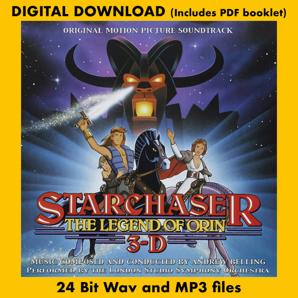 BUYSOUNDTRAX Records presents the world premiere soundtrack release of STARCHASER: THE LEGEND OF ORIN, featuring music composed and conducted by Andrew Belling, performed by the London Studio Symphony Orchestra, mastered by James Nelson of Digital Outland. The digital booklet contains liner notes written by noted author Randall D. Larson and includes comments from the composer.