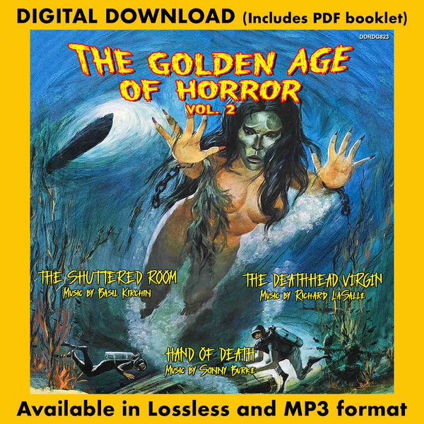 Dragon’s Domain Records proudly presents the second volume in a new ongoing series of music from classic horror films from the Golden Age, featuring a trilogy of world premiere releases of music from THE SHUTTERED ROOM, THE DEATHHEAD VIRGIN and HAND OF DEATH.