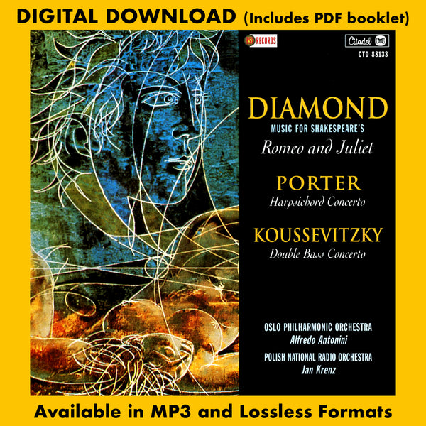 Buysoundtrax Digital, in association with Citadel Records presents Music for Shakespeare's Romeo and Juliet by David Diamond as performed by the Polish National Radio Orchestra. Also featured on this album is Douglas Moore's "In Memorium" as performed by the Japan Philharmonic Orchestra, Serge Kouusevitzky's Concerto for Double Bass and Orchestra Op. #3 featuring Gary Karr on double bass. Capping off the album is Quincy Porter's Concerto for Harpsichord and Orchestra with Virginia Pleasant on Harpsichord accompanying the Polish National Radio Orchestra.