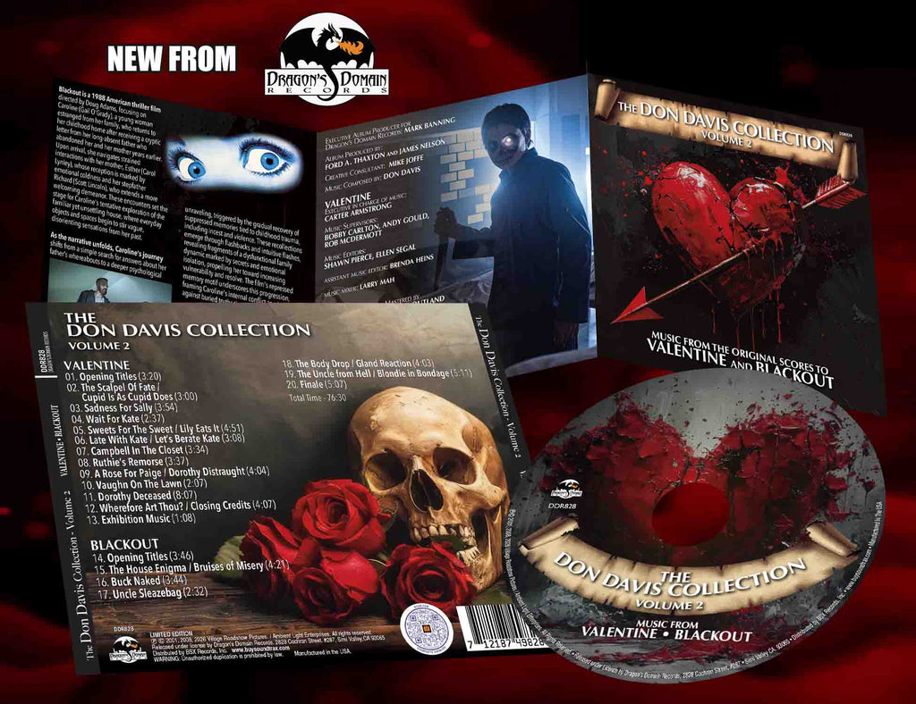 Dragon’s Domain Records presents THE DON DAVIS COLLECTION, VOLUME 2 featuring the world premiere releases of VALENTINE and BLACKOUT, two horror films from the composer's extensive filmography.